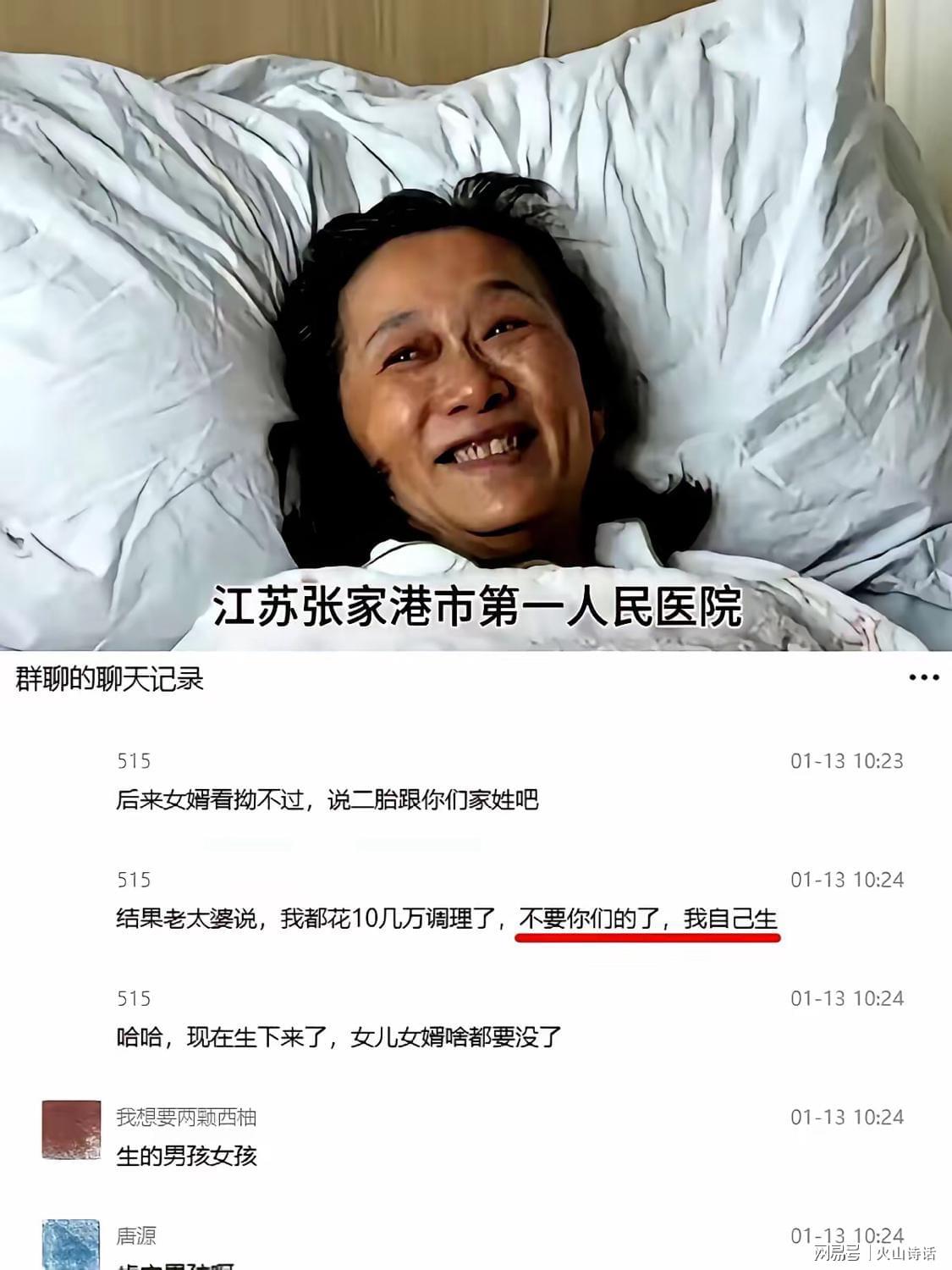 其实这个妈就是气不过,反正有钱就试管生儿子。现在女婿计划落空,估计下一步打争产官司。万万没想到,退休年龄生育零成本的政策居然有人用上了,这个年龄生实在太好了,有社保,有医保,有退休金,有时间带。